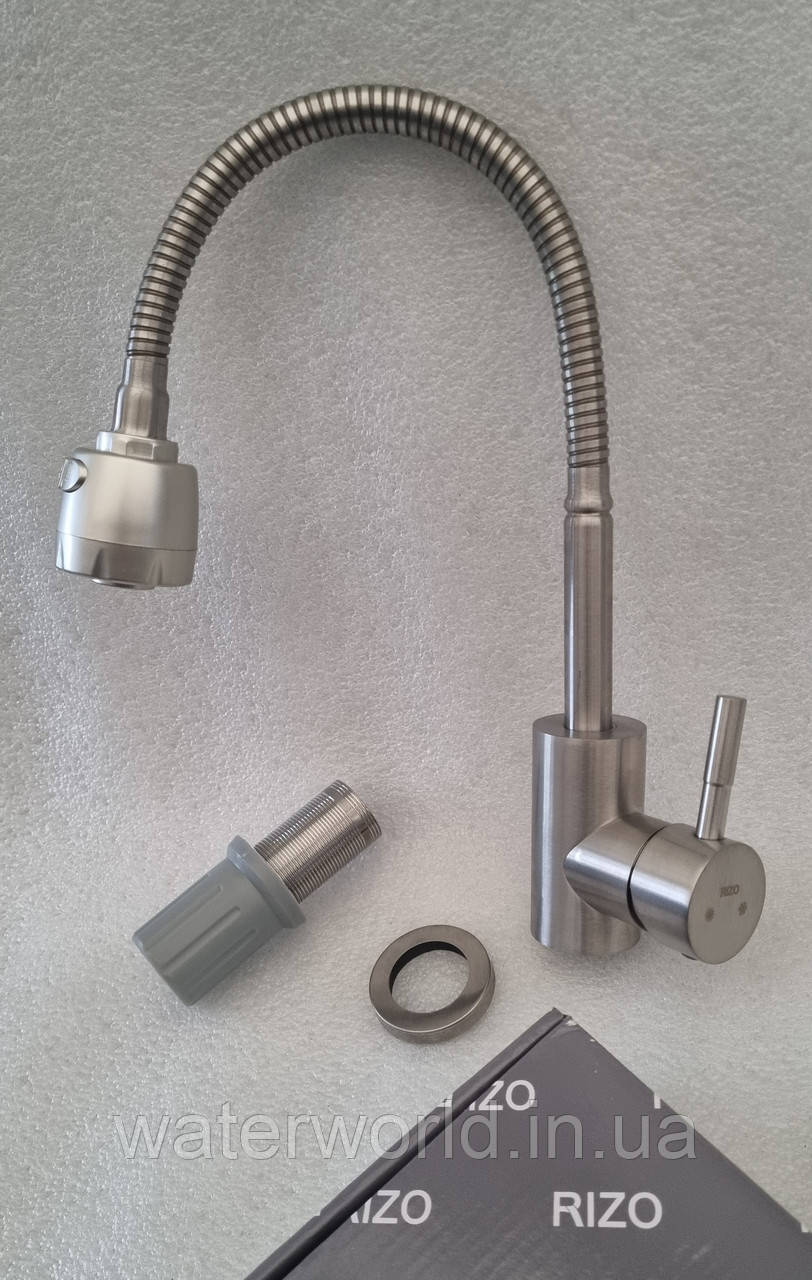 Змішувач для кухні з гнучким гусаком із неіржавкої сталі з кріпленням на гайці